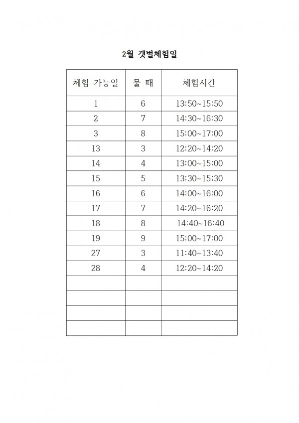 26년 2월 갯벌체험가능일